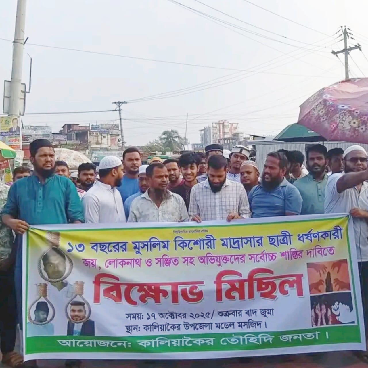 গাজীপুর জেলার কালিয়াকৈর উপজেলার পূর্ব মৌচাক এলাকায় ১৩ বছরের কিশোরী আশামণি ধর্ষণের অভিযোগে বিক্ষোভ সমাবেশ অনুষ্ঠিত হয়। শুক্রবার দুপুরে নামাজের পর, স্থানীয় মুসল্লিরা এবং এলাকাবাসী নিয়ে এই বিক্ষোভ সমাবেশ অনুষ্ঠিত হয়। সমাবেশে অংশগ্রহণকারীরা দোষীর দৃষ্টান্তমূলক শাস্তির দাবি জানান। এ সময় তারা বিভিন্ন ধরনের স্লোগান দেন এবং মৌচাক এলাকায় একটি সংক্ষিপ্ত র্যালি বের করেন। আইন-শৃঙ্খলা পরিস্থিতি নিয়ন্ত্রণে রাখতে ঘটনাস্থলে পুলিশ মোতায়েন ছিল। সমাবেশ থেকে বক্তারা ধর্ষণের ঘটনার দ্রুত তদন্ত এবং দোষীদের কঠোরতম শাস্তির দাবি জানিয়েছেন। এলাকায় এ ধরনের ঘটনায় তীব্র চাঞ্চল্যের সৃষ্টি হয়েছে। স্থানীয়রা অবিলম্বে দোষীদের কঠোরতম শাস্তি ফাঁসির দাবি জানিয়েছেন, যাতে ভবিষ্যতে এ ধরনের অপরাধ করার প্রবণতা হ্রাস পায়।"